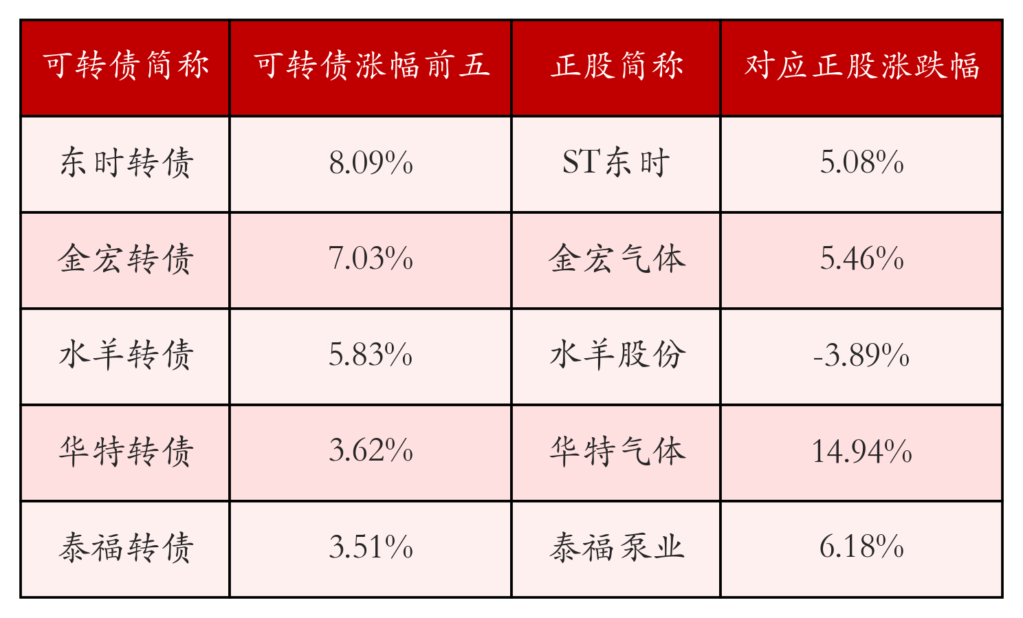 南财智讯3月23日电,盘后数据显示,债市方面,中证转债指数收跌0.96%,报487.87,成交额为692.3亿元。可转债方面,今日共成交356只可转债,其中49只收涨,0只收平,307只收跌。具体来看,9只可转债涨幅超过2%。其中东时转债(113575)涨8.09%,金宏转债(118038)涨7.03%,水羊转债(123188)涨5.83%。今日有102只可转债跌幅超2%,亿田转债(123235)跌11.76%,光力转债(123197)跌9.29%,阳谷转债(123211)跌8.43%。存在交易量的可转债所对应的正股中,28只收涨,0只收平,328只收跌。具体来看,13只可转债对应正股涨幅超过5%,其中,恒逸石化(000703)涨停,收涨10.04%;芯能科技(603105)涨停,收涨10.02%。同时所对应的可转债:恒逸转2(127067)同涨2.05%;芯能转债(113679)同涨1.22%。今日有200只可转债对应正股跌幅超过5%,三房巷(002726)跌停,收跌10.14%。同时所对应的可转债:龙大转债(128119)同跌3.0%;蒙娜转债(127044)同跌2.52%;超声转债(127026)同跌3.65%;泰瑞转债(113686)同跌6.26%;华懋转债(113677)同跌0.05%;澳弘转债(111024)同跌4.02%;三房转债(110092)反涨0.01%。